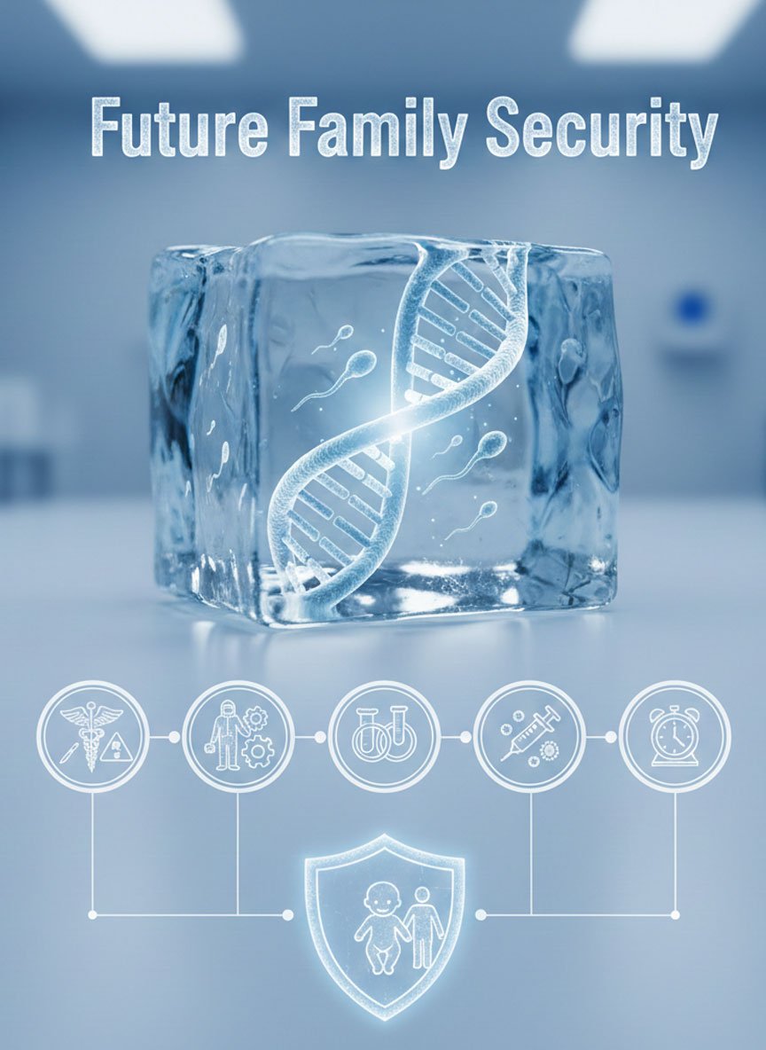 Sperm quality and quantity can be affected by age, lifestyle, and medical conditions. Freezing your sperm “locks in” your current fertility potential, providing a vital insurance policy for your future family.